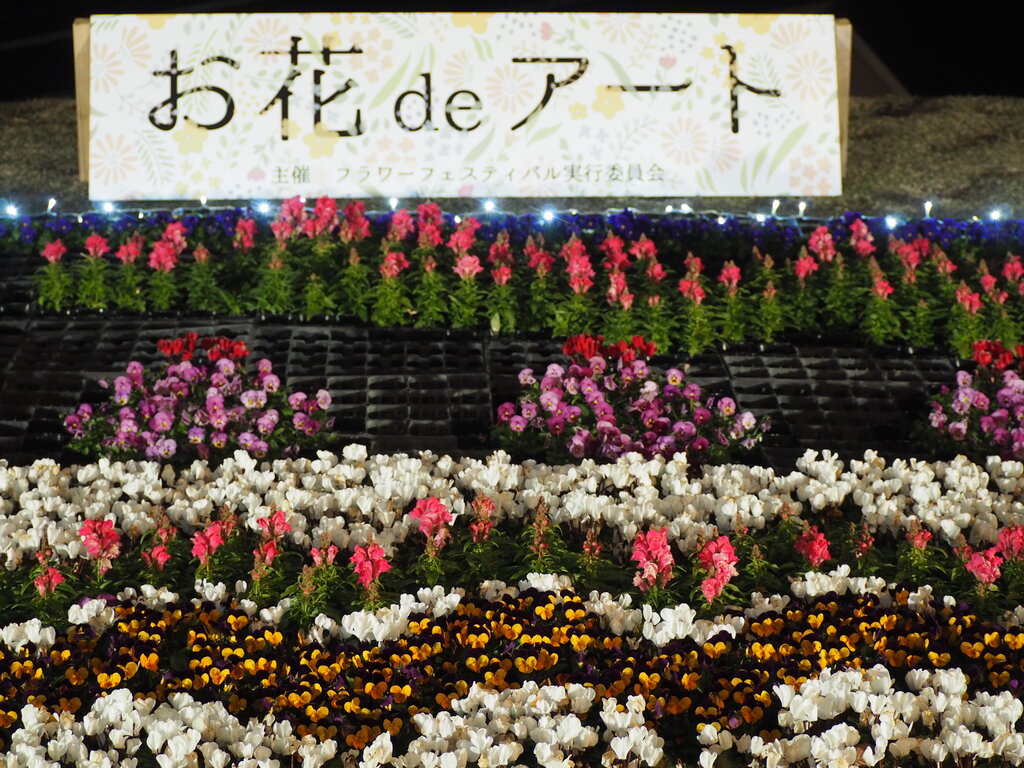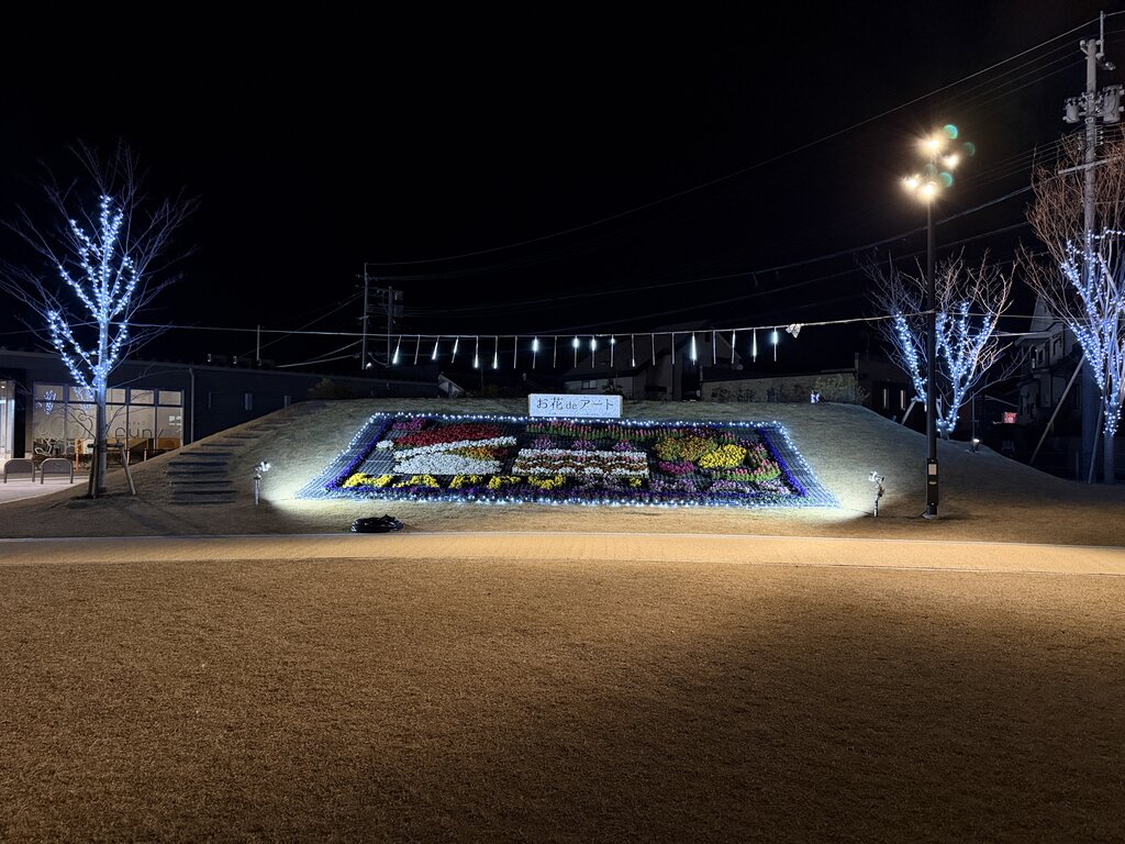 斜面遊具に、イルミネーションとお花deアート