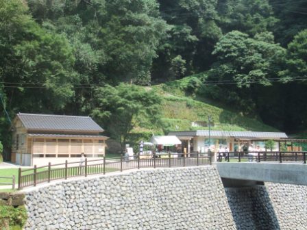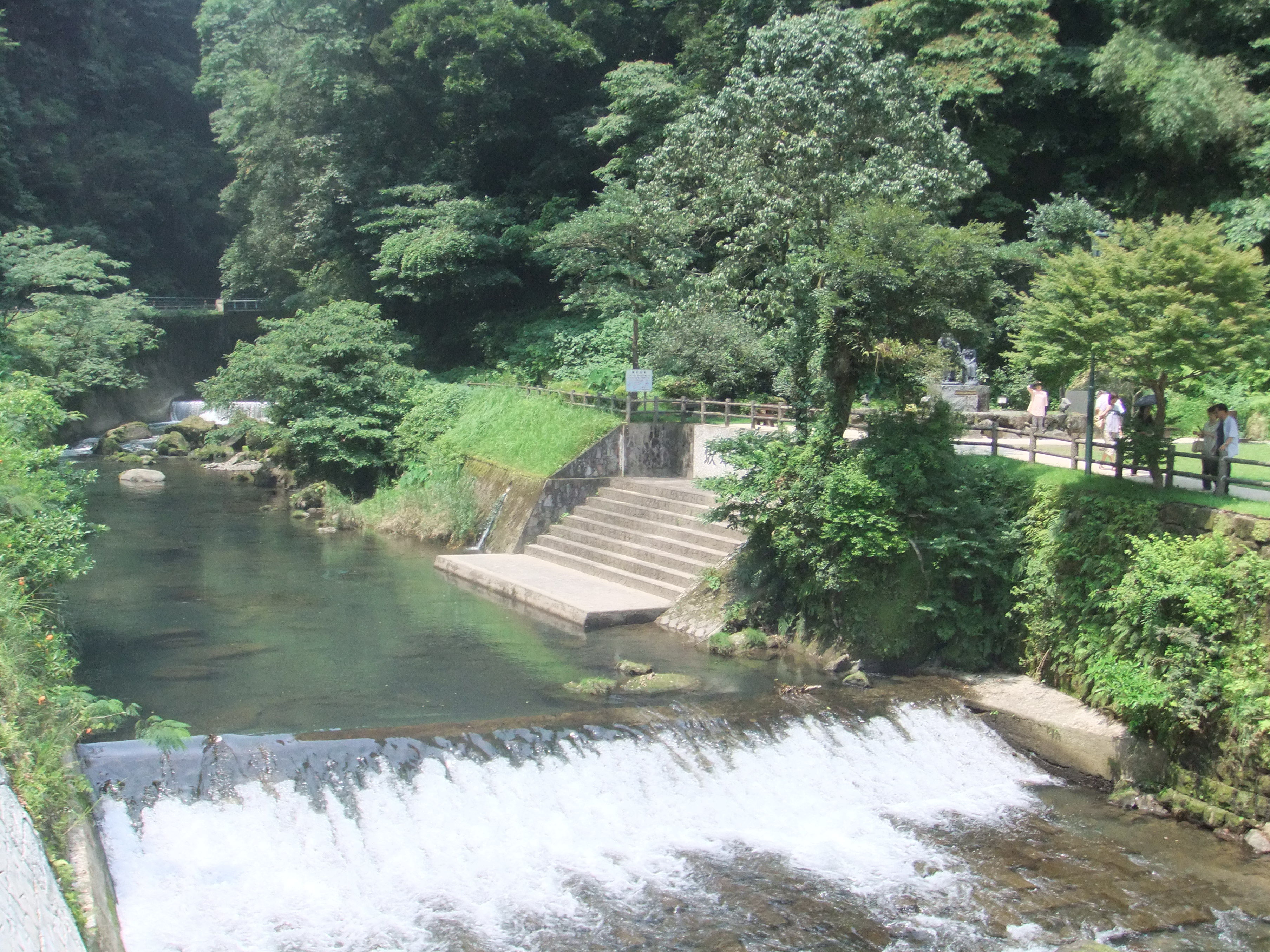 右の画像、川岸の小さな湯船が龍馬が浸かったお風呂なんだそう。