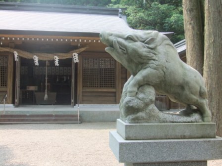 凛とした空気の中、境内へ向かうと狛犬ならぬ狛猪