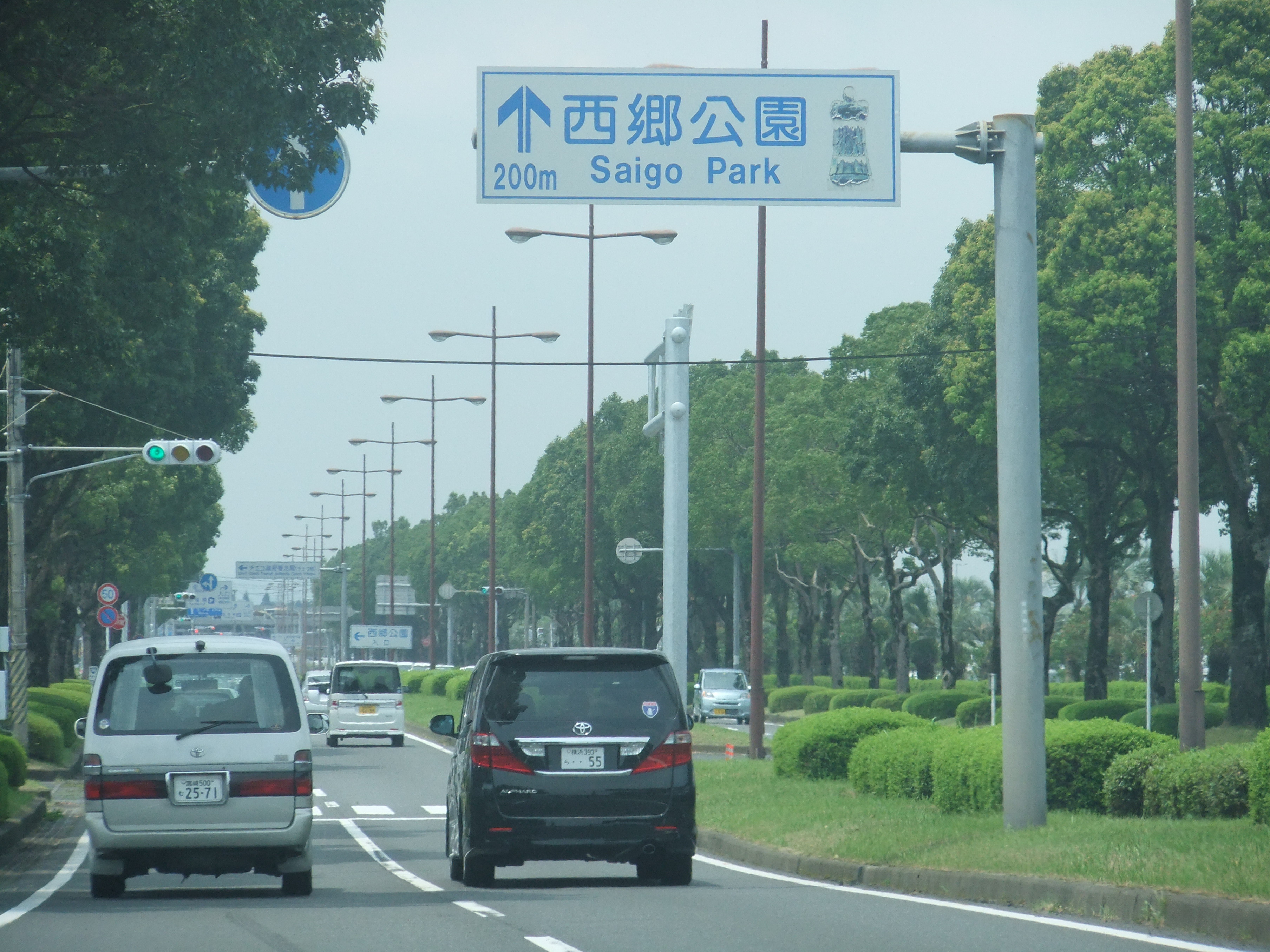 高速道路を通り、西郷公園へ向けて走る道中