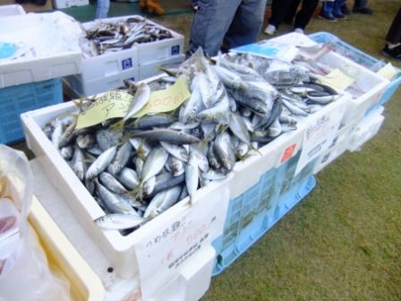 テント内では諫早の新鮮な野菜や魚などが所せましと並べてありました