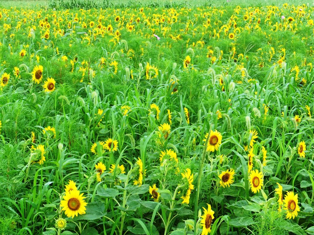 ココのひまわり畑には、沢山のえのころ草が顔を出していました。