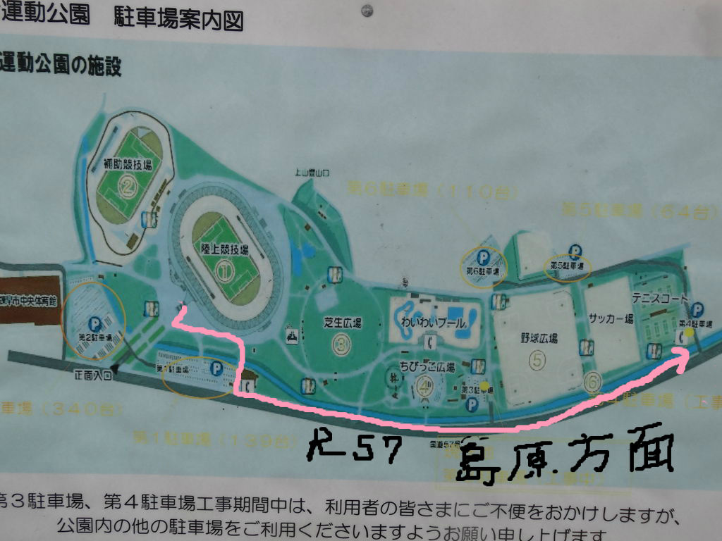 元の位置、陸上競技場メインゲート前です!