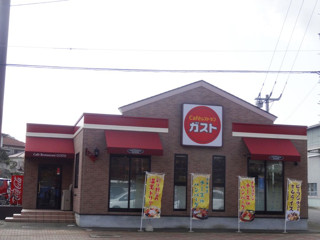 斜め前に、ファミレスのガストさん。