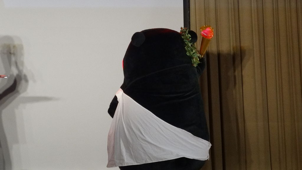 オリンピックの聖火ランナーコスプレのくまモン!
