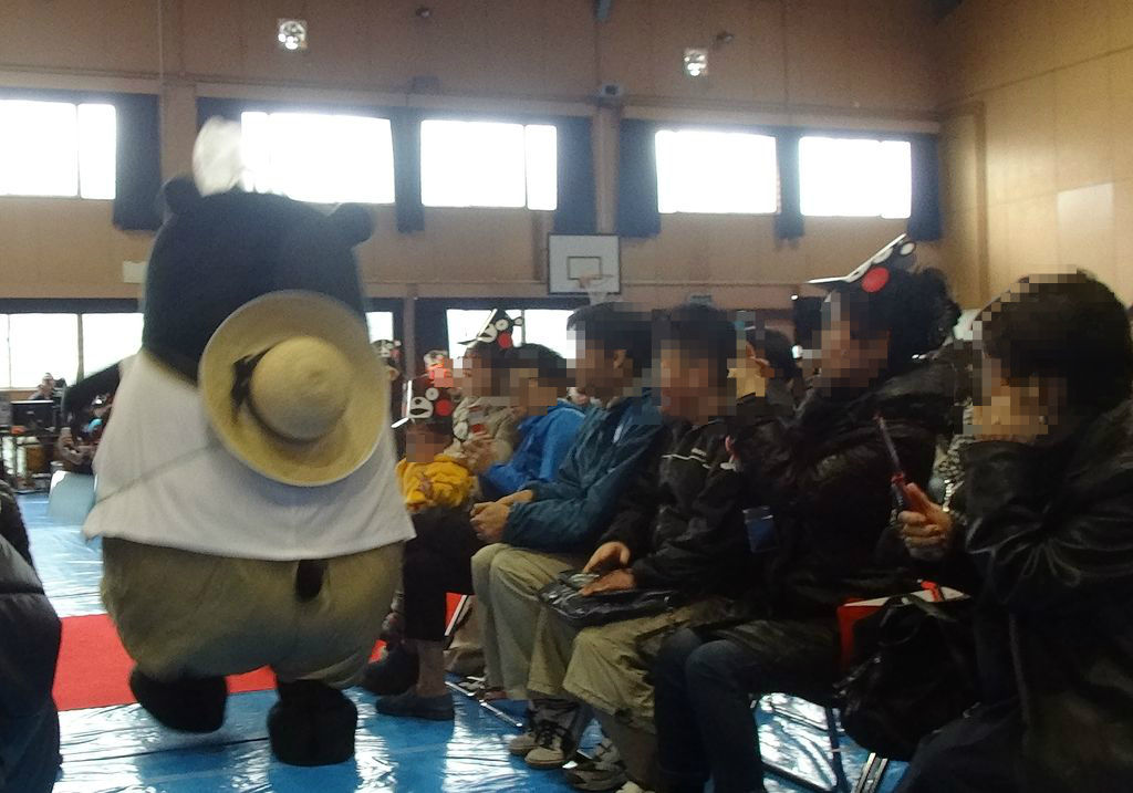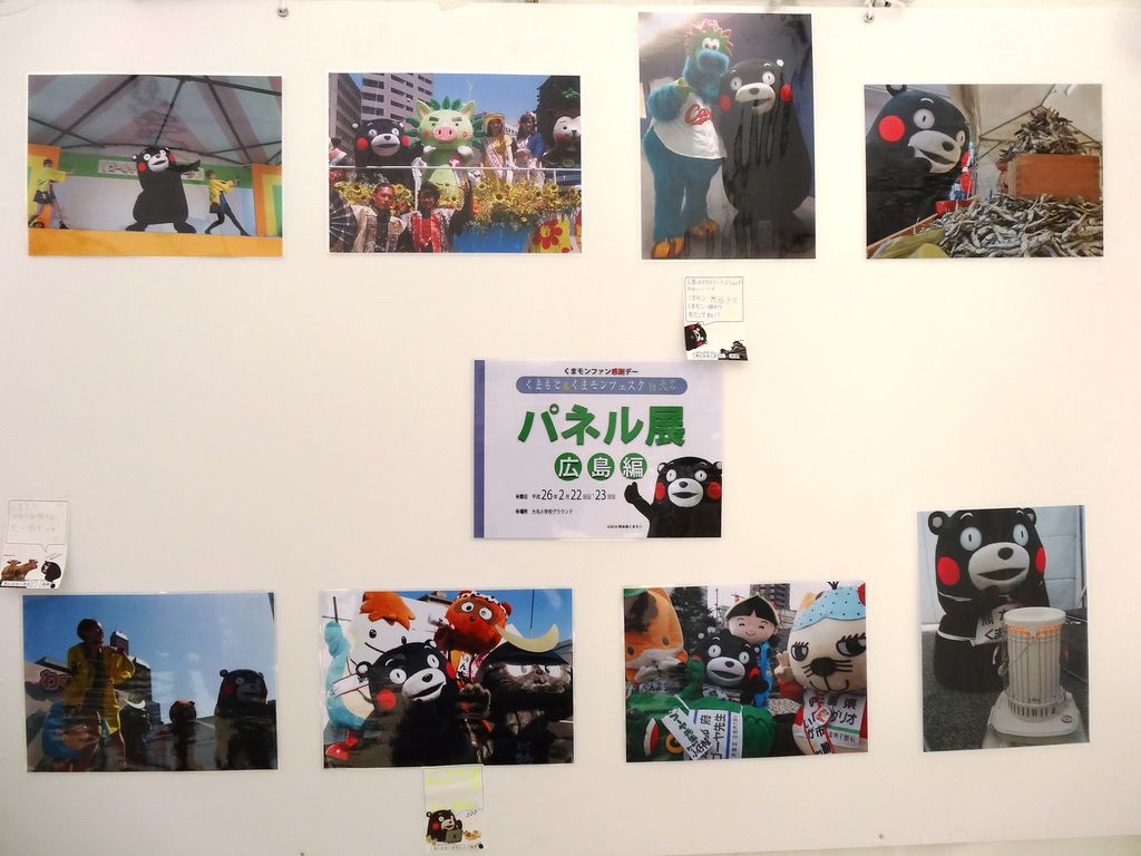 小学校の校庭では、くまモンのパネル展や熊本県内のPRが行われてました。