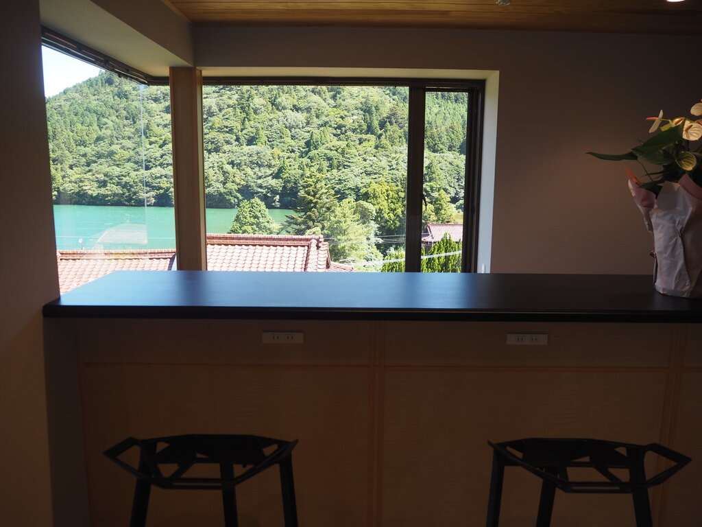 最奥のカウンター席からも、おしどりの池が見えます。