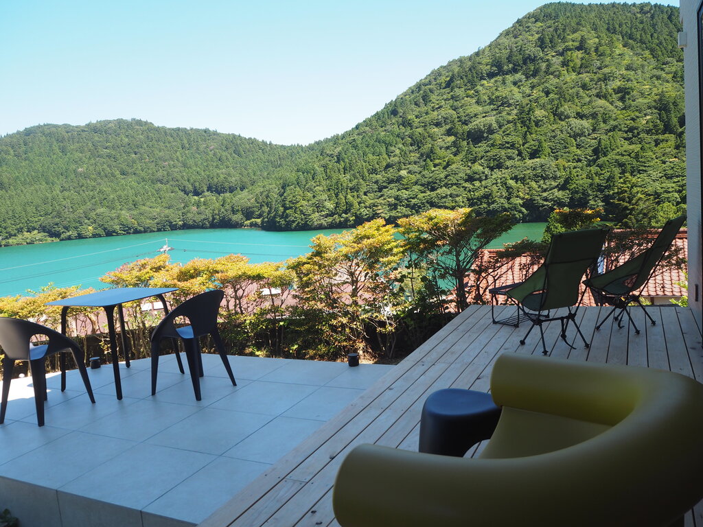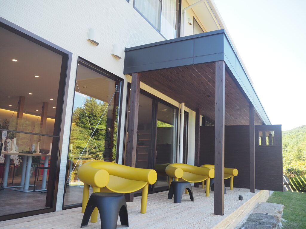 デッキには存在感のあるモダンな椅子。