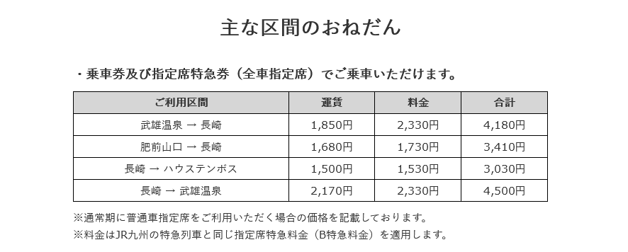 武雄温泉駅→長崎駅コース(午前便)は