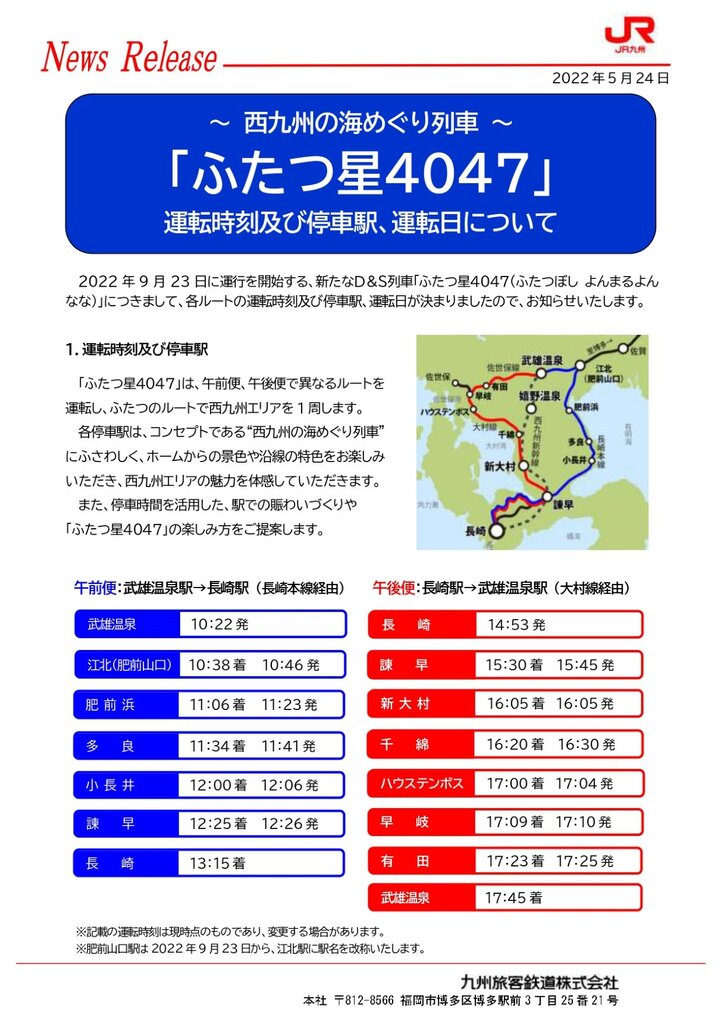 (JR九州さんニュースリリースより)