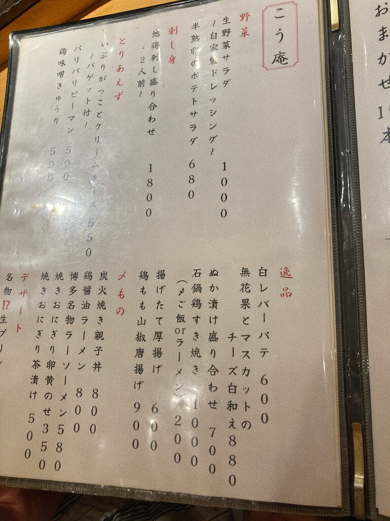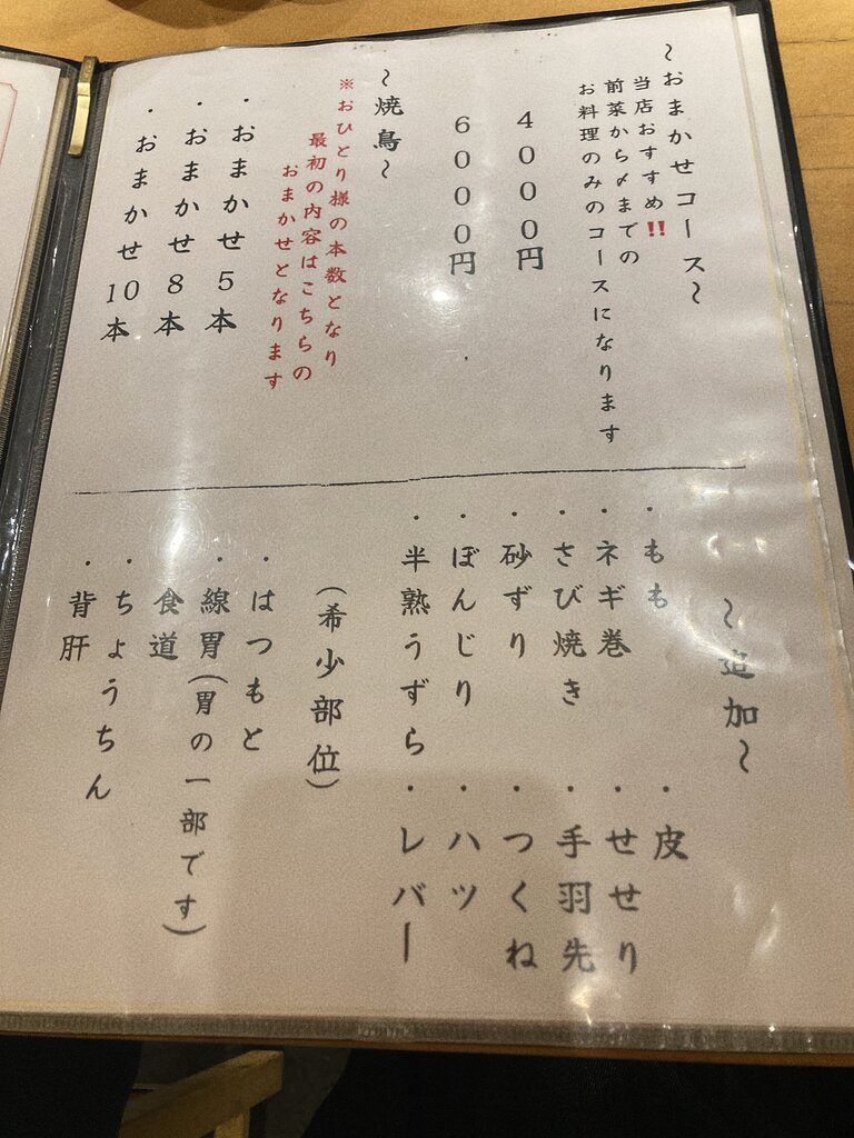 メニューに焼鳥の値段が載ってないので