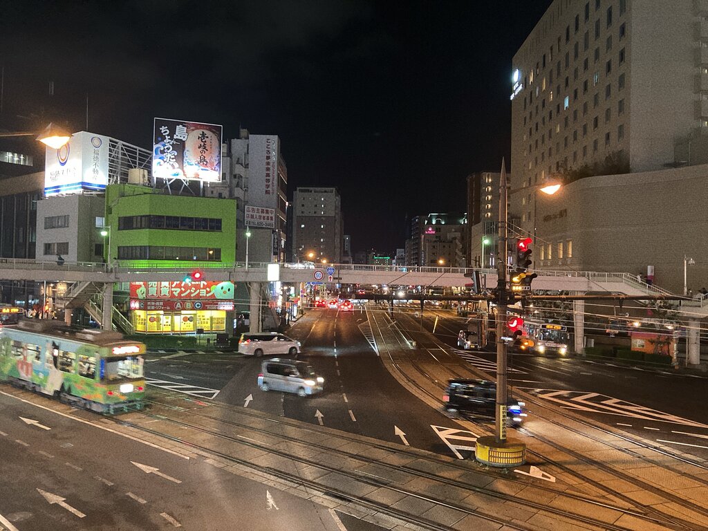 東口前の歩道橋から、長崎市役所方向