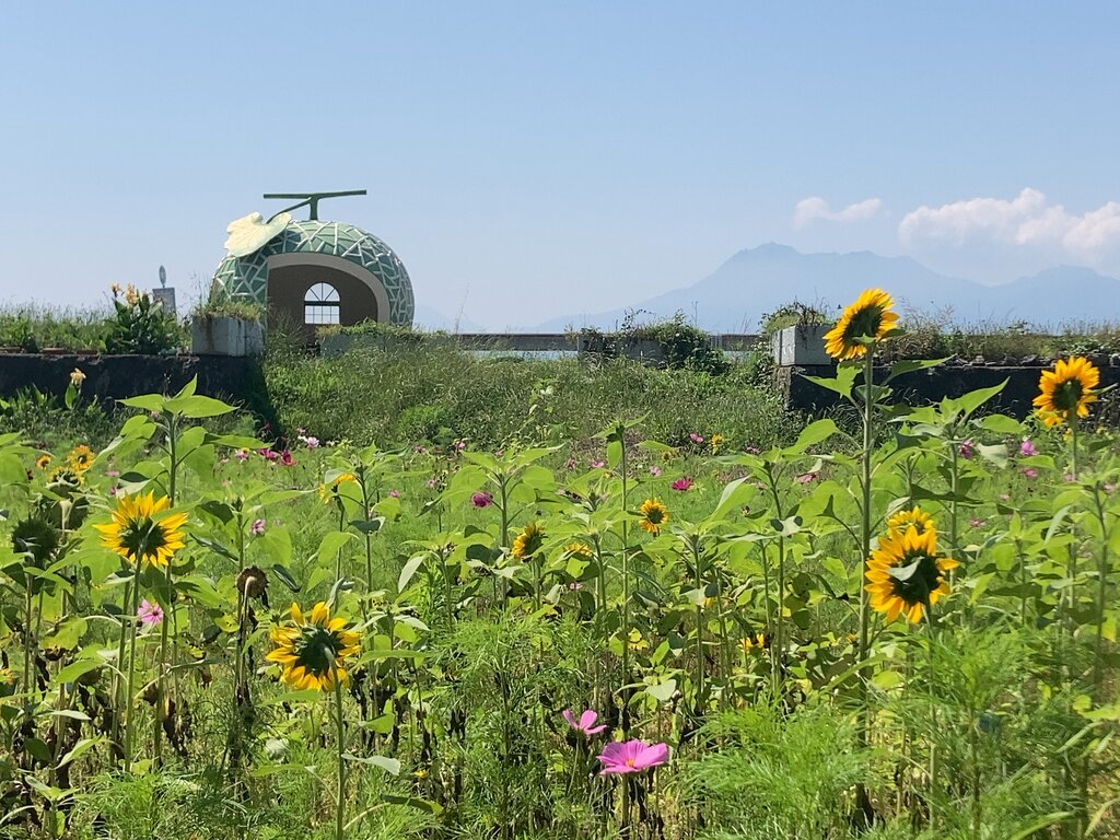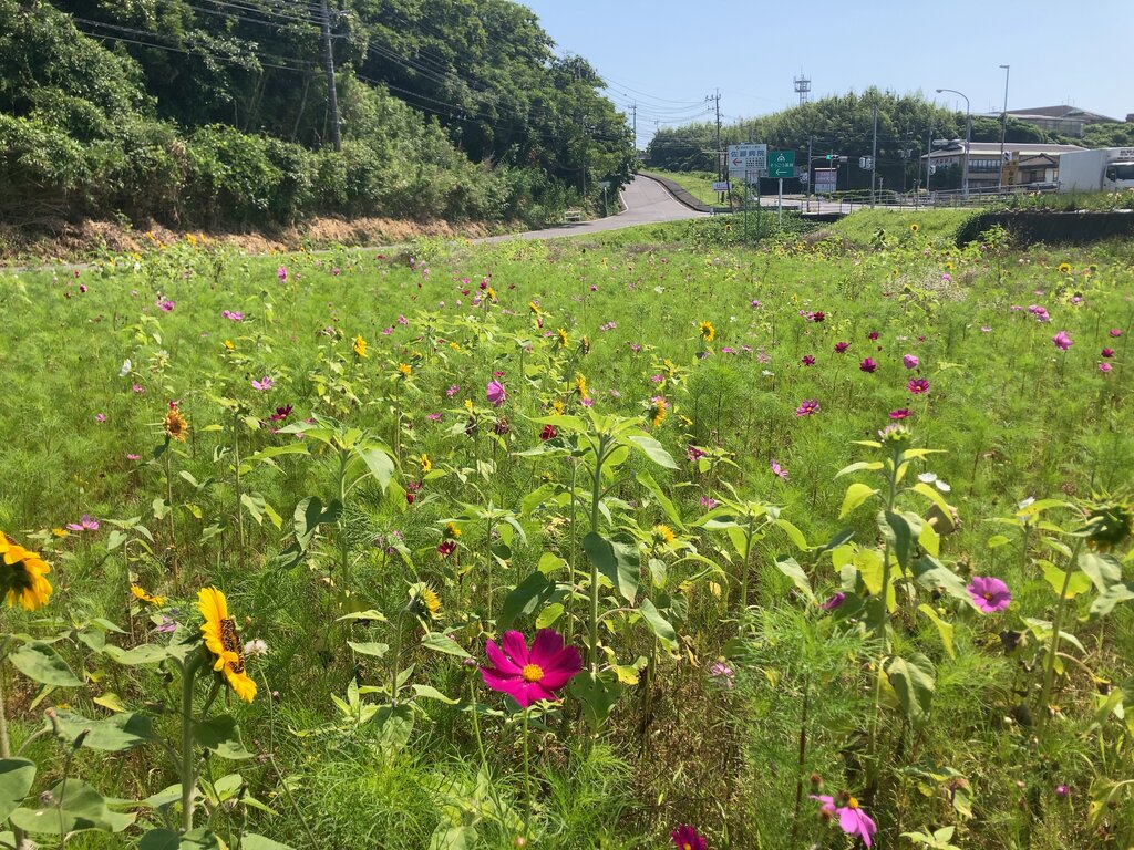 ひまわりとコスモスが咲いてます