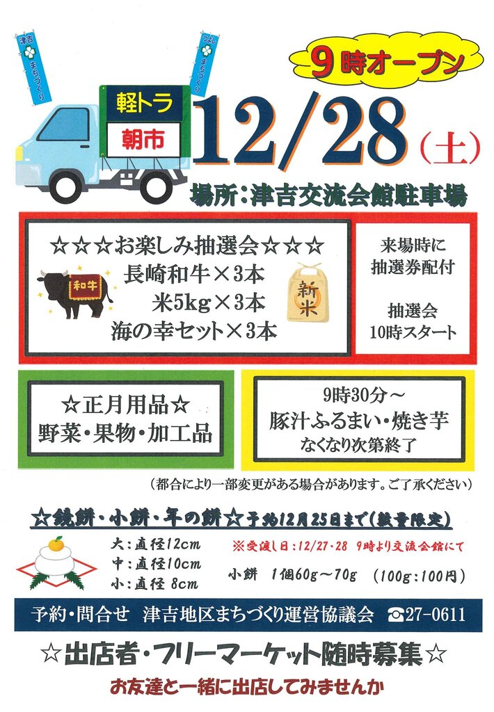 津吉地区 軽トラ朝市(平戸市)【日 程】 12月28日(土)
