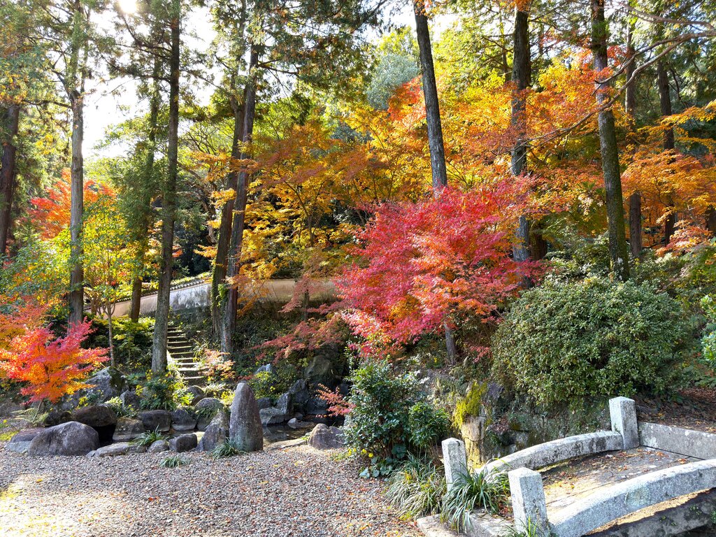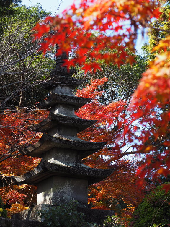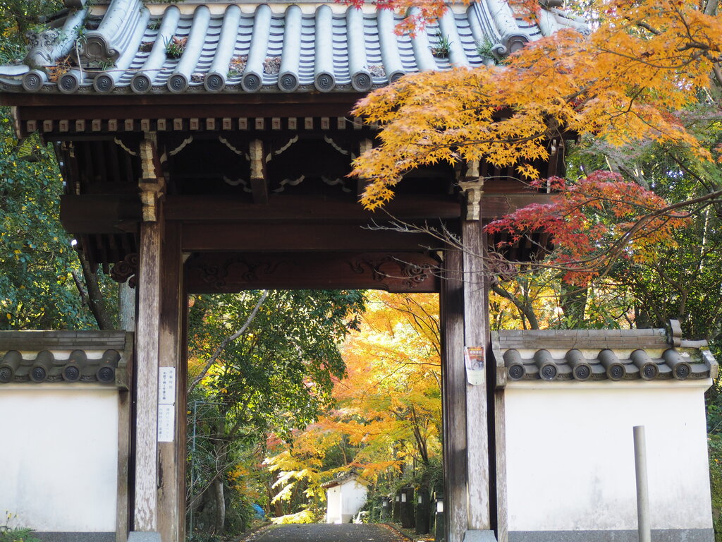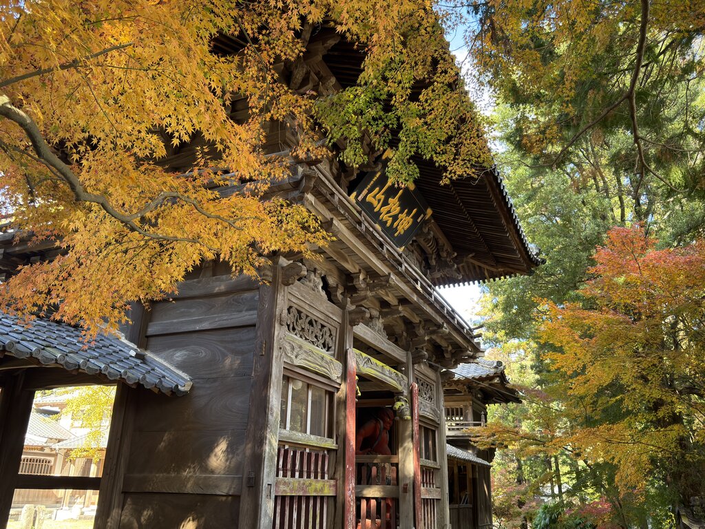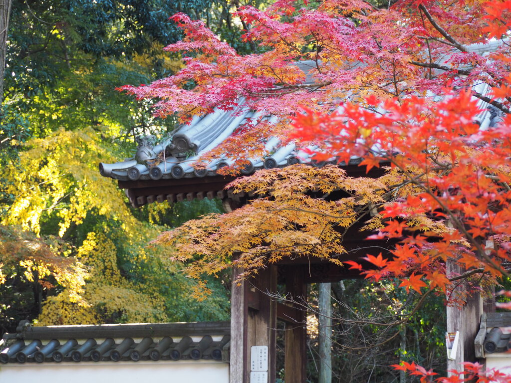 楼門は色とりどりの紅葉で鮮やか