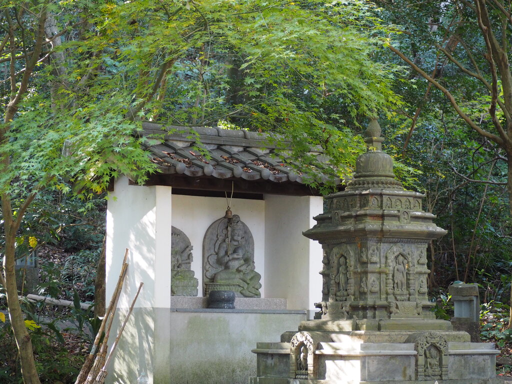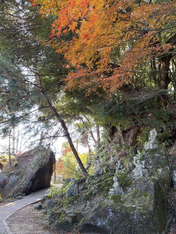 本堂と奥の院の分岐点付近の紅葉は色づき始め