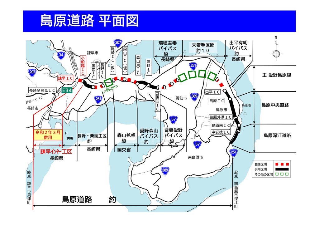 既に供用開始されている栗面IC⇔諫早ICまで