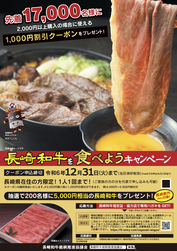 抽選で200名に長崎和牛5,000円相当をプレゼント📦