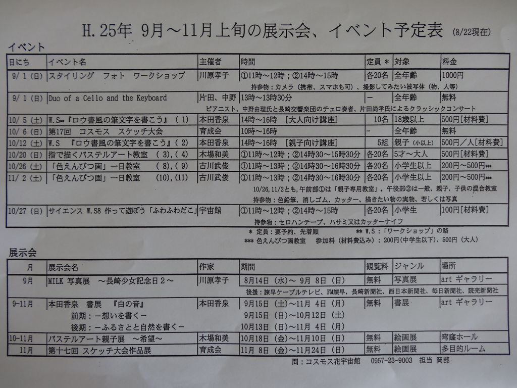 こどもの城(無料)やコスモス花宇宙館(無料)