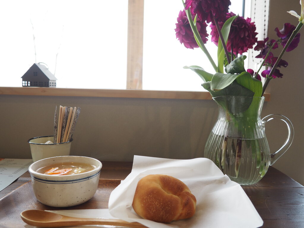 ベーグルとスープをお願いしました。