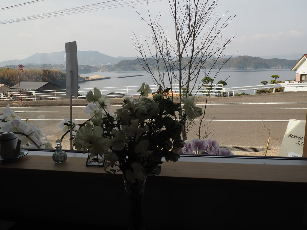 窓際のカウンター席からは大村湾が一望