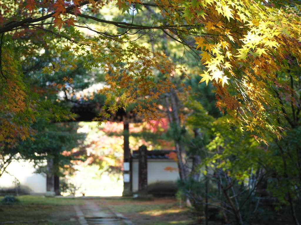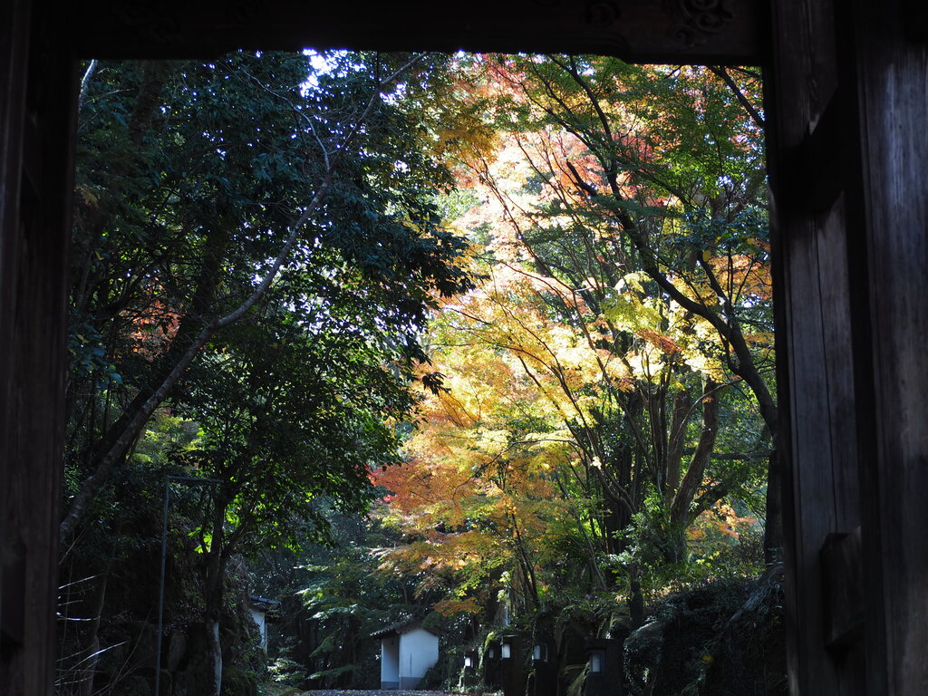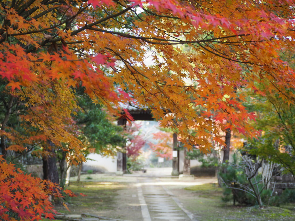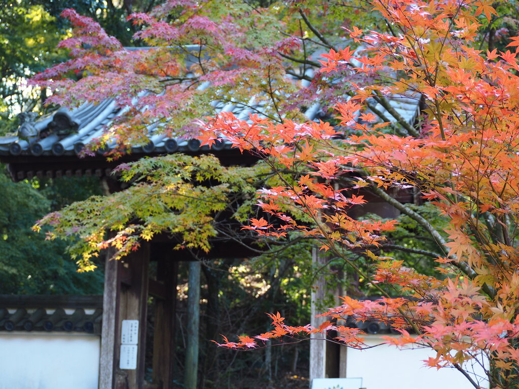楼門は色とりどりの紅葉で鮮やか