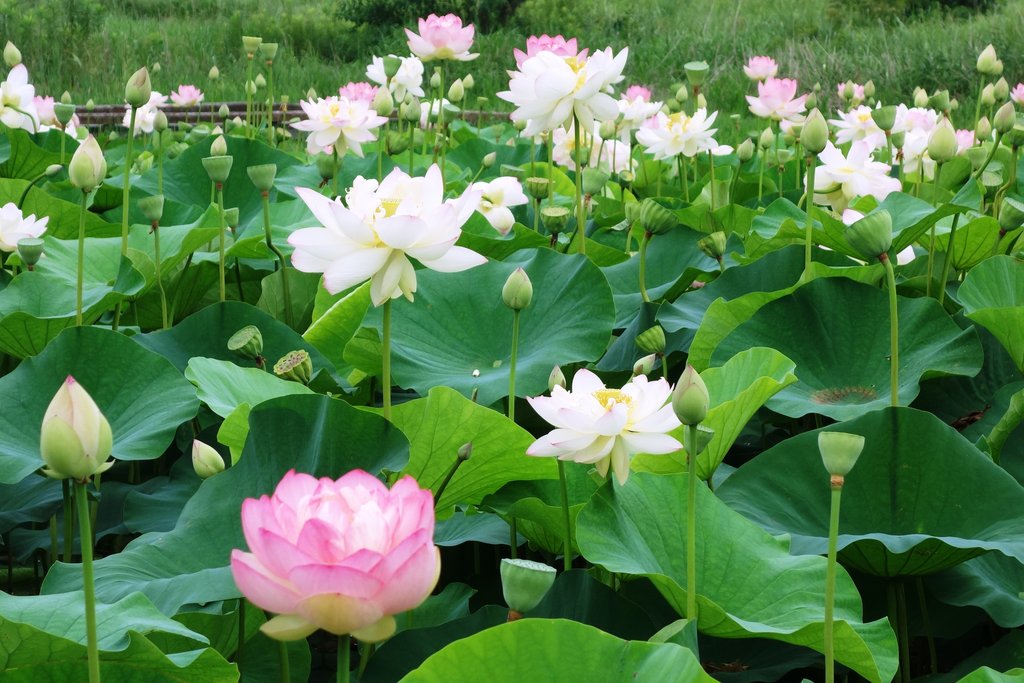 唐比のハス園には、数十種類の蓮の花が
