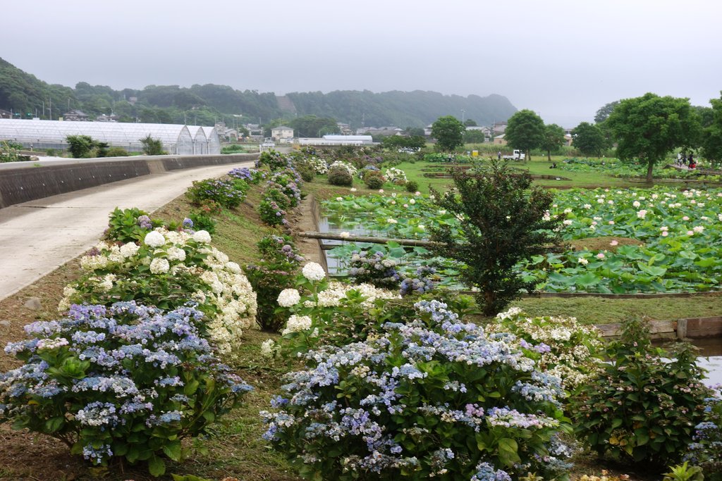 ハス園入口に咲いているアジサイ