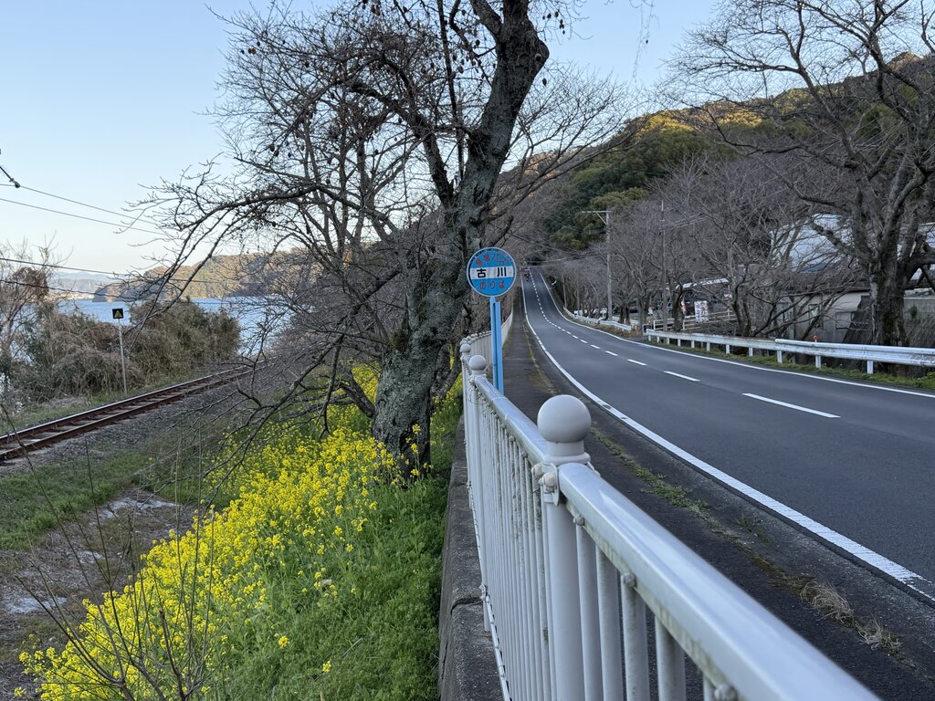線路と国道の間に咲く菜の花