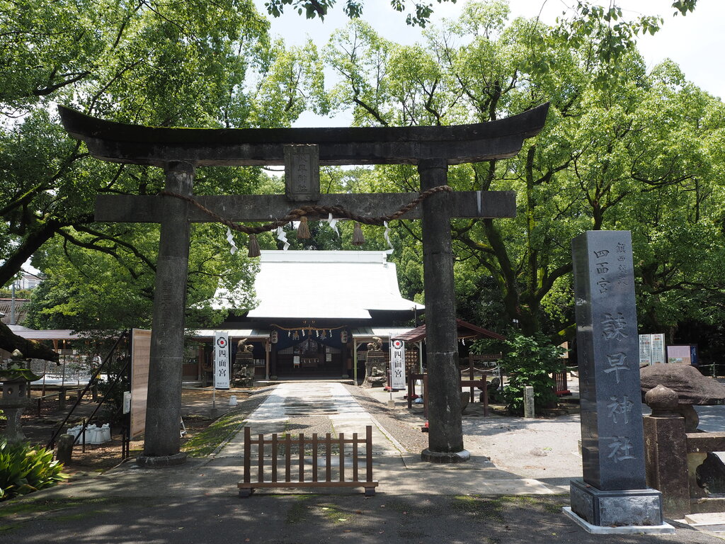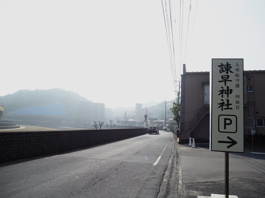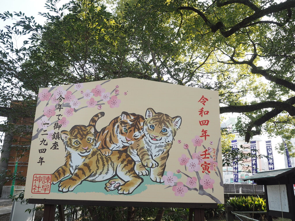 諫早神社さんの鳥居に君臨している