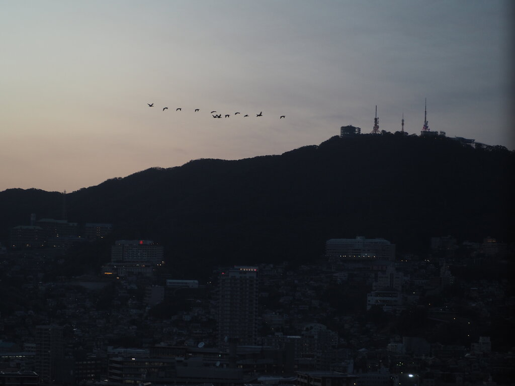 稲佐山方向に飛んで行く鳥